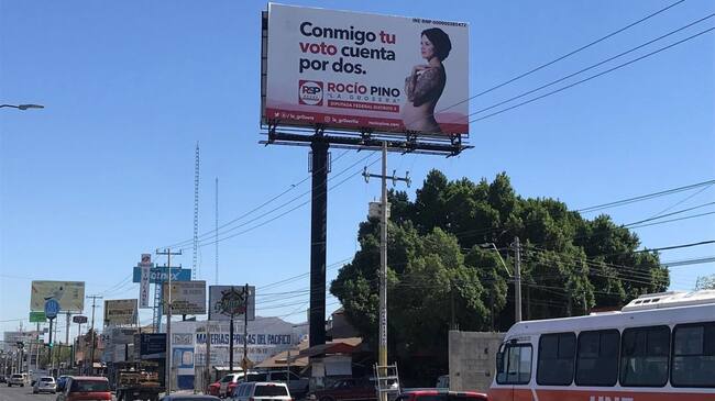 "La Grosera" ha llamado la atención de muchos con atrevidos carteles en los que aparece embarazada y desnuda con lemas como "Conmigo tu voto vale por dos", "¿Las quieres? Te las doy" o "Una mujer con chichis es una mujer empoderada".