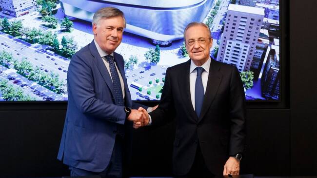 Carlo Ancelotti, junto a Florentino Pérez, en su presentación como nuevo técnico del Real Madrid. / @realmadrid