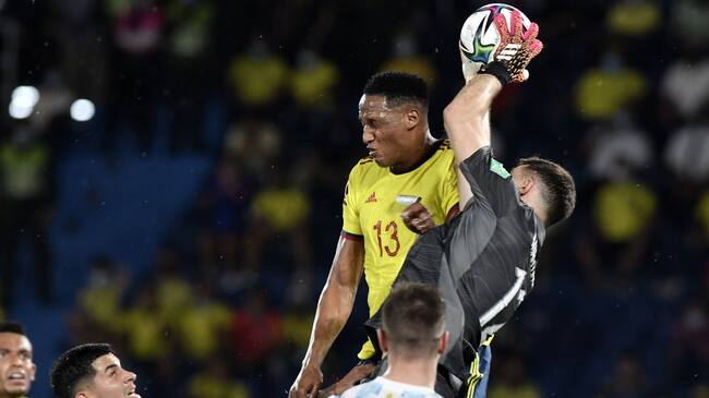 En el partido entre Colombia y Argentina, que finalizó ematado 2-2 en Barranquilla, se presentó una aparatosa acción en el primer tiempo entre dos viejos conocidos de la Premier League, Yerry Mina y el arquero Emiliano Martínez, quien recibió la peor parte del choque y tuvo que ser sustituido por Agustín Marchesín.