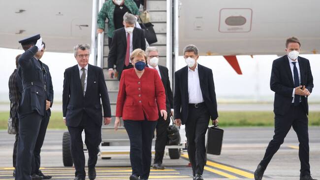 La canciller alemana Angela Merkel en su llegada al Reino Unido / . (Getty)