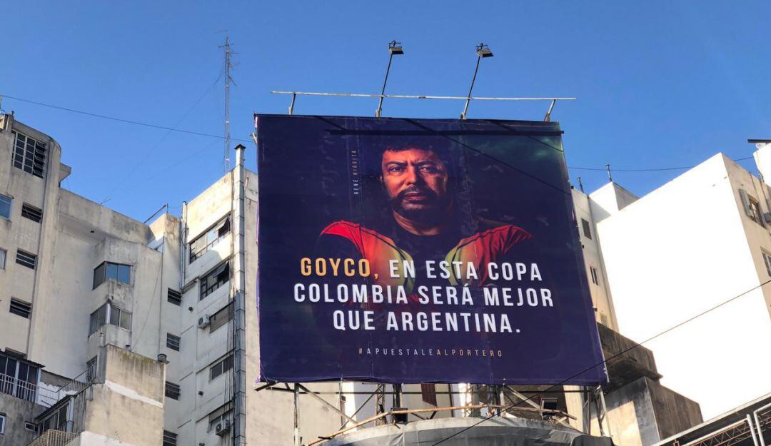 Para aumentar la conversación y retar al arquero Argentino, René Higuita publicó una valla en Buenos Aires, en la que el ex arquero colombiano reafirma su fé en la selección tricolor "Goyco, en esta copa Colombia será mejor que Argentina".