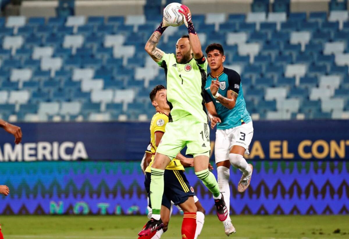 David Ospina ganando un duelo aéreo