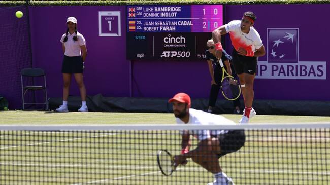 Robert Farah y Juan Cabal en los octavos de final del ATP de Queen's / Twitter: @fedecoltenis/ Paul Harding