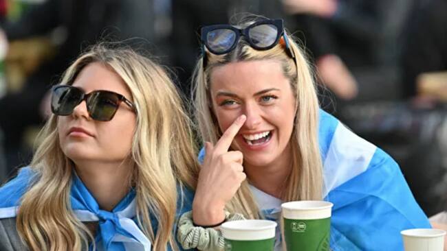 Foto 5 de 10Fanáticas escocesas en la 'fan zone' de Glasgow, durante el partido de la fase de grupos de la Eurocopa 2020 entre Inglaterra y Escocia.