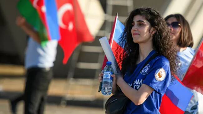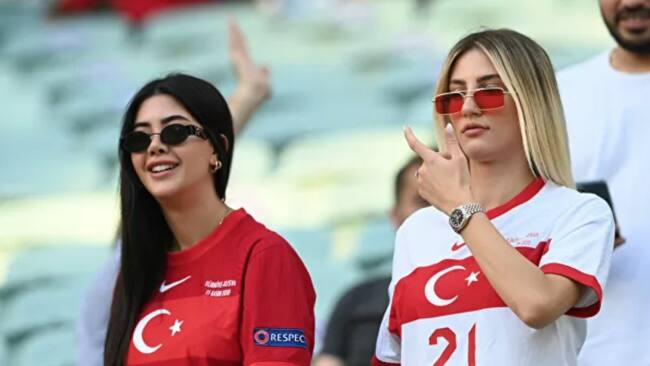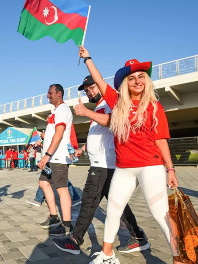 Foto 2 de 10Hinchas turcas antes del partido de la fase de grupos entre las selecciones de Turquía y Gales en Bakú, Azerbaiyán. Gales obtuvo la victoria con un marcador 2-0.