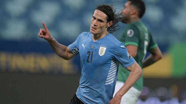 Edinson Cavani, celebrando su gol con Uruguay frente a Bolivia. / Getty Images