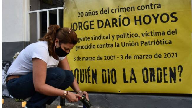 Hoyos, fue miembro de la UP, y el 3 de marzo de 2001 fue asesinado en medio de una alianza entre paramilitares, policías y miembros del Ejército.