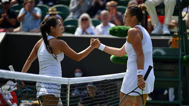 María Camila saludo a Aryna Sabalenka al final del juego. / Getty Images / BEN STANSALL