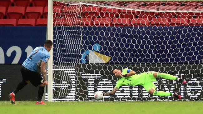 David Ospina atajándole el penal a Gimenez en Copa América 2021 / Getty Images