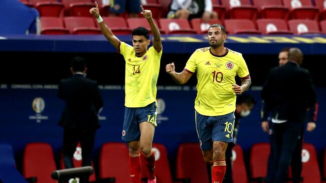 Luis Díaz y Edwin Cardona celebrando el gol ante Argentina en la Copa América 2021 / Getty Images