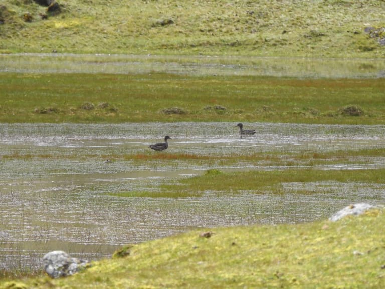 El pato de páramo (Anas andium) apareció en el sector del Mortiño del páramo del Almorzadero. Esta ave es única de las montañas andinas de Colombia, Venezuela y Ecuador.