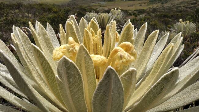 Los frailejones del páramo del Almorzadero están floreciendo durante estos días. Por eso, los valles con estas plantas lucen amarillos y llenos de aves como colibríes.