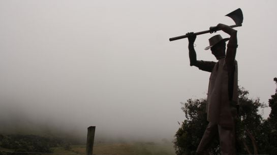 En la vereda Santa Rosa, una de las más de 20 que hay en la localidad de Sumapaz, una estatua de un hombre con sombrero y ruana y un azadón levantado con sus manos, le recuerda a los transeúntes que el páramo más grande del mundo no es un sitio apartado de la civilización humana.