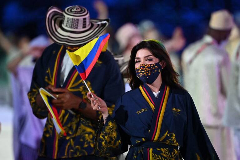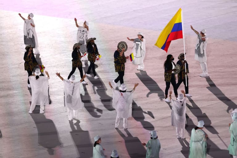 17 colombianos representaron a la delegación nacional en el desfile inaugural de Tokio.