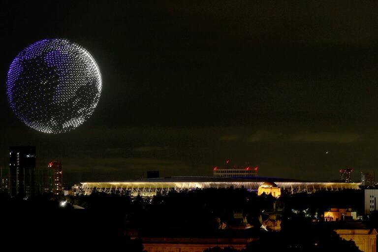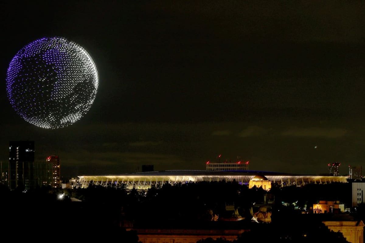 Con drones se proyectó la imagen del planeta sobre el Estadio Olímpico de Tokio.