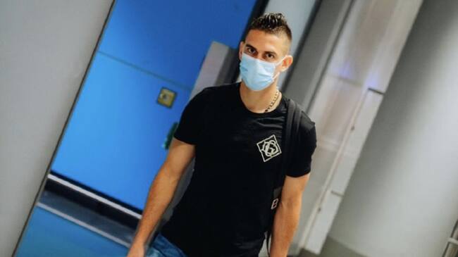 Rafael Santos Borré tras su llegada al aeropuerto de Fráncfort. / @eintracht_esp