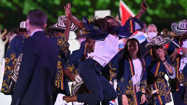 Radiante como siempre, así saltó al Estadio Olímpico de Tokio la atleta Caterine Ibargüen, quien fue la abanderada de la delegación nacional junto al boxeador Yuberjen Martínez.