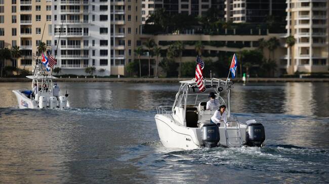 Mientras se acercaban a aguas internacionales la guardia costera estadounidense ordenó a los tripulantes retirar las banderas cubanas de las embarcaciones.