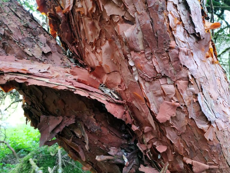 Estos árboles, que superan los 10 metros de altura, tienen el tallo pintado de rojo y repleto de cascarillas que se desprenden con el viento.