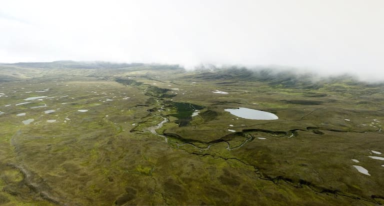Un extenso valle repleto de humedales y lagunas, con un río zigzagueando por un cañón, hace parte del paisaje paramuno de Santurbán en Silos y Berlín.