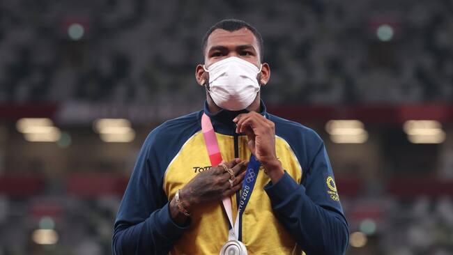 Foto 6 de 6Anthony Zambrano y su medalla de plata en los Juegos Olímpicos de Tokio 2020