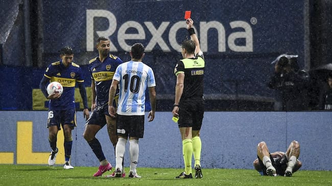 Edwin Cardona recibe la cartulina roja del árbitro central. / Getty Images / Marcelo Endelli