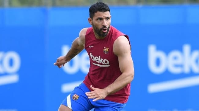 Sergio Agüero en uno de sus entrenamientos con el Barcelona. / @FCBarcelona_es