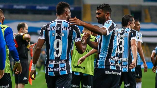 Miguel Ángel Borja festeja su primer gol con Gremio. / @Gremio