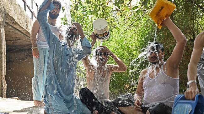 Los pakistaníes han recurrido a utilizar baldes de agua a las afueras de sus casas, bajo la sombra, para enfrentar el aumento de temperatura.(Getty Images)