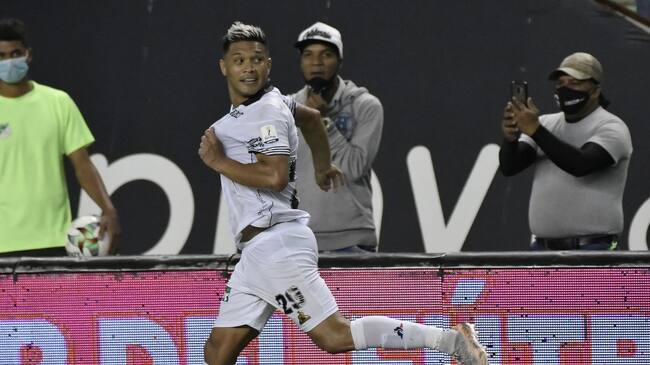 Teófilo anotó su primer gol con el Cali y mostró el escudo 'verdiblanco'