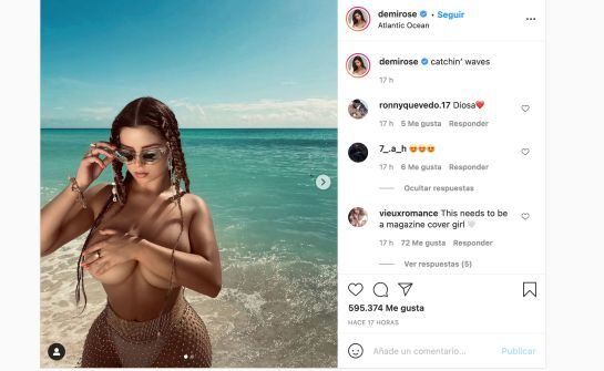 La modelo británica de ascendencia colombiana Demi Rose dejó sin palabras a sus seguidores luego de publicar una foto en el mar.