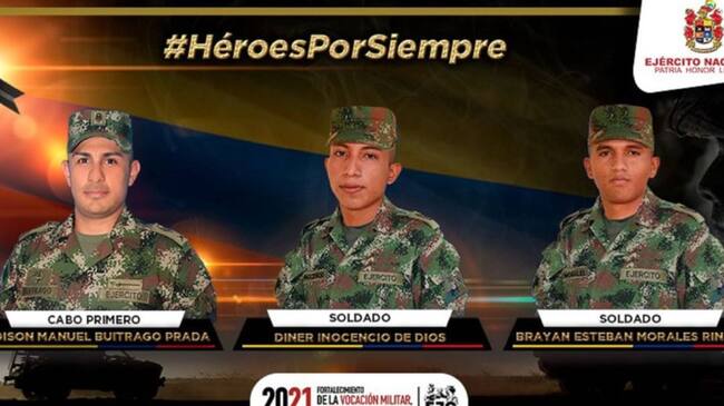 Los militares asesinados son el cabo primero Edison Manuel Buitrago Prada y los soldados Diner Inocencio de Dios y Brayan Esteban Morales Rincón. De igual manera, tres uniformados más resultaron lesionados.