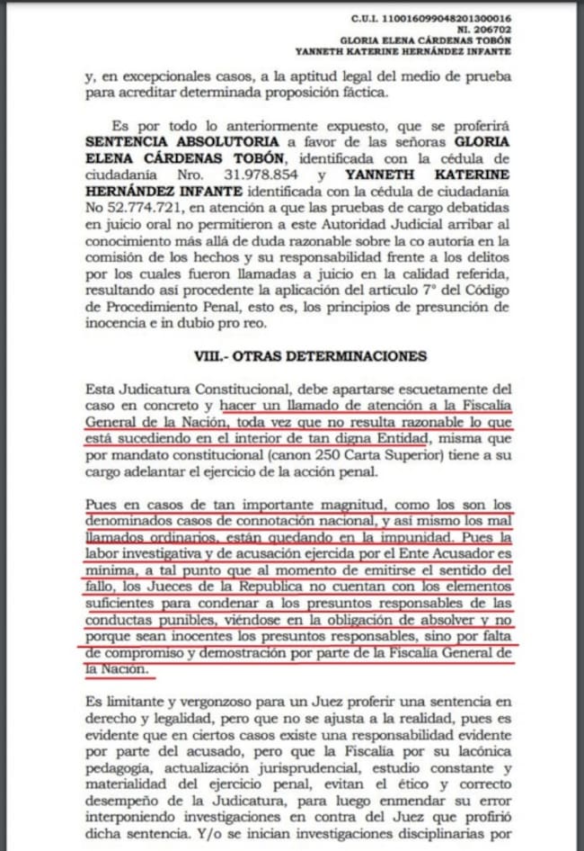 Y a eso se suma la sentencia del juez 56 de conocimiento de Bogotá del caso Interbolsa, que le hizo un llamado a la Fiscalía, porque los denominados casos de connotación nacional, y así mismo los mal llamados ordinarios, están quedando en la impunidad porque la Fiscalía no investiga.