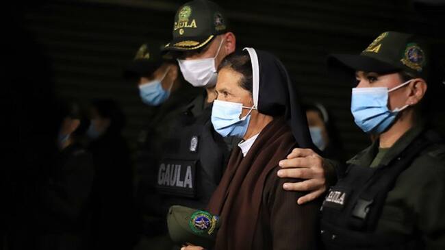 La religiosa Gloria Cecilia Narváez acompañada de un cuerpo de policías del Gaula / Colprensa