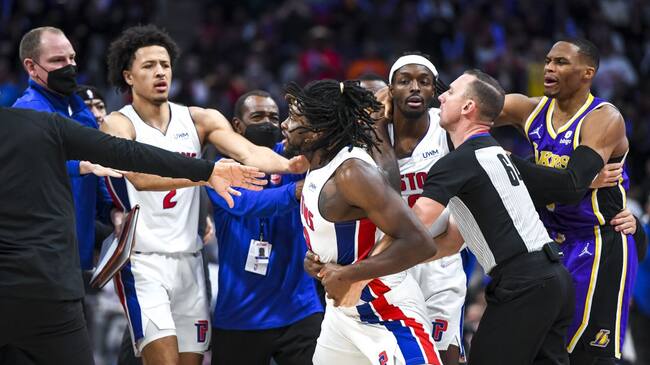 El golpe desató la furia del joven pívot de los Pistons, de 2,03 m de altura y 113 kg, quien se encaró con James y tuvo que ser sujetado por sus entrenadores y miembros de seguridad del Little Caesars Arena de Detroit.