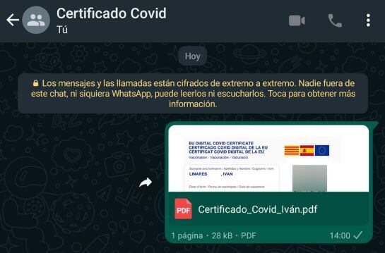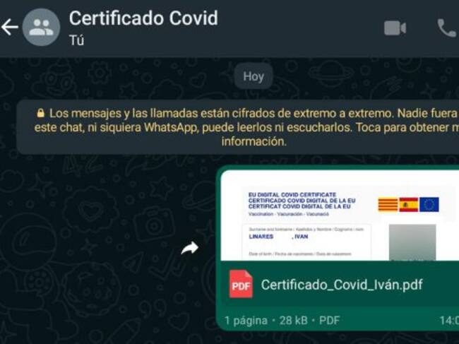 Para esto, conviene tener el certificado en un lugar frecuente y a la mano, como lo es WhatsApp, una aplicación que cualquier persona tiene al alcance.