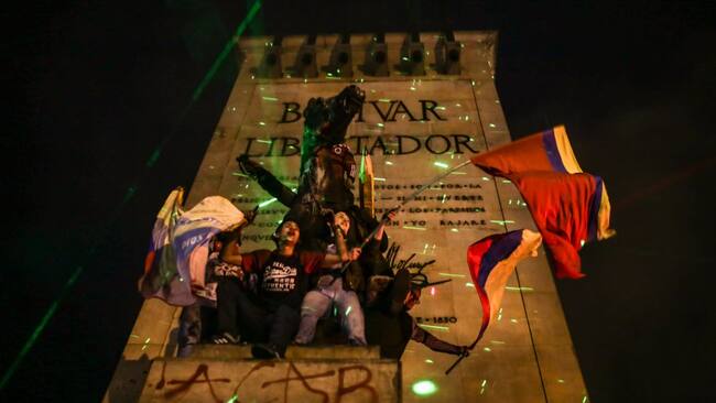 Foto 5 de 10Las protestas en Colombia se masificaron dejando postales históricas en el Monumento de los Héroes en Bogotá. Meses después, este lugar fue modificado para la futura construcción del metro.
