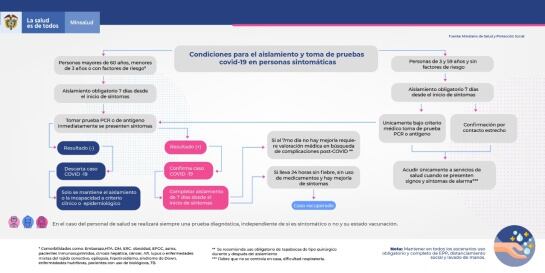 El ministro de Salud y Protección Social, Fernando Ruiz Gómez indicó que habrá cambios en los lineamientos para definir el aislamiento preventivo; así como en los criterios para la toma de pruebas COVID-19, a partir de la fecha.