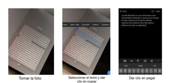 Proceso de reconocimiento de texto en fotos en iPhone