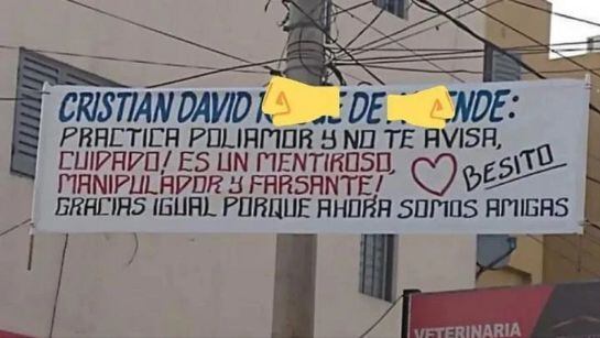 Una mujer destapó públicamente la infidelidad de su pareja como forma de vengarse de él; colocó una pancarta gigante en el que - con nombre completo- delataba a su excompañero sentimental.