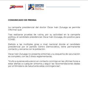 Cabe mencionar que Óscar Iván Zuluaga en las últimas horas participó en un debate en el que participaron Juan Manuel Galán, Camilo Romero, Alejandro Gaviria, Íngrid Betancourt, Francia Márquez, Sergio Fajardo, Federico Gutiérrez, Gustavo Petro y Rodolfo Hernández.