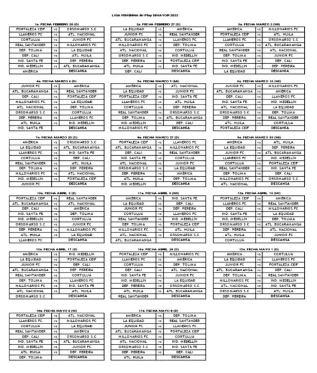 Fixture de la fase regular de la Liga Femenina. / Dimayor