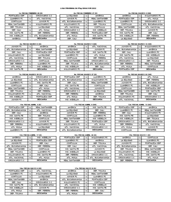 Fixture de la fase regular de la Liga Femenina. / Dimayor