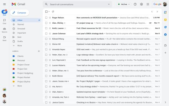 En cuanto al nuevo diseño, Google ya mostró un borrador de cómo será. Y tal y como se ve en las imágenes, la paleta de colores cambiará a tonos más azules y la ventana con los correos electrónicos tendrá esquinas redondeadas.