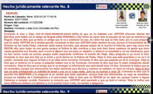 “Tenemos el ala militar que estaba comandada por el teniente coronel Robinson Javier González del Río, quien se conocía como ‘Coro’ o ‘Comando’ y también ‘el amigo de la fría’, esta persona era la encargada de llegar a los funcionarios del Ejército y de otras organizaciones del Estado, con el fin de ofrecer dádivas en nombre de la organización de alias Matamba para poder obtener información privilegiada y colaboración de estas personas que tenían acceso a esa información”. Explicó el fiscal del caso.