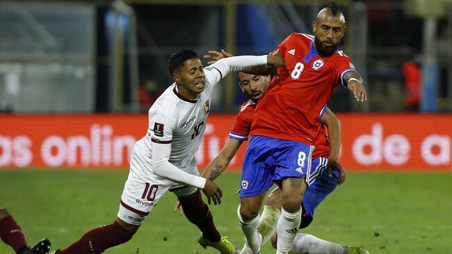 Richard Celis jugando para la selección de su país ante Chile. / Getty Images / MARCELO HERNANDEZ