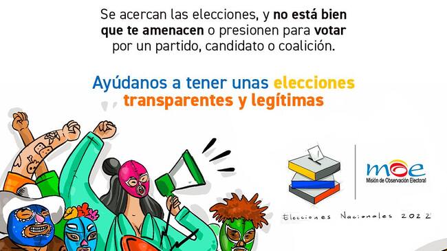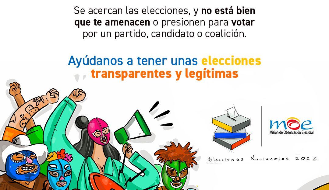 Por ello, existen organizaciones como la Misión de Observación Electoral – MOE, que son de carácter independiente de cualquier partido político e incluso, de Gobierno y tiene la labor de identificar aquellas irregularidades y delitos que puedan alterar el correcto desarrollo del proceso electoral.