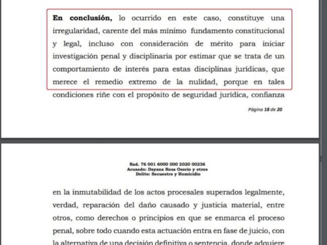Los jueces anularon todo lo actuado desde la acusación en contra de los expolicías Michael Mancilla Gil Y Dayanna Rosa Osorio Yepes, al considerar que la fiscal especializada Ana Victoria Nieto, quien inicialmente tuvo ese caso, sin argumento jurídico alguno degradó los delitos en contra de los expolicías aparentemente para favorecer a los procesados.