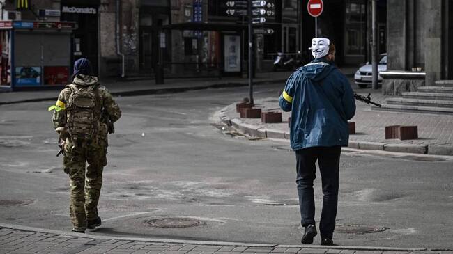 Soldados y civiles ucranianos vigilando las calles del país.          Foto: Getty