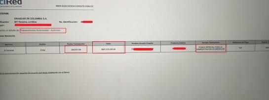Caracol Radio conoció que la transacción se hizo el 26 de enero de 2022, y el detenido empresario Carlos Mattos alcanzó a girar $991.075.000 al fondo especial de bienes de la Fiscalía General de la Nación, como adelanto de la indemnización a la justicia que se había pactado en los preacuerdos retirados por la Fiscalía.